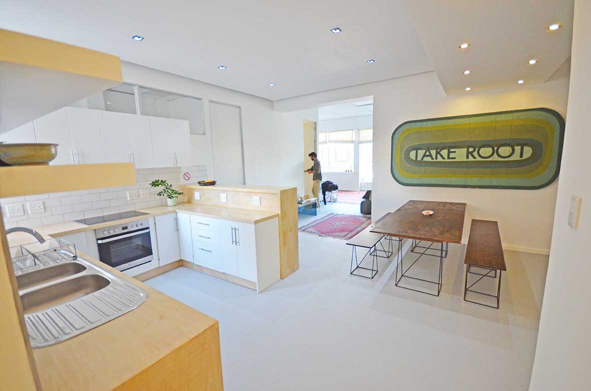 The bulk of their volunteers come from all over the world and this project was to convert their original offices into volunteer accommodation. The location is the top floor of a 50’s industrial building on the edge of Cape Towns CBD.