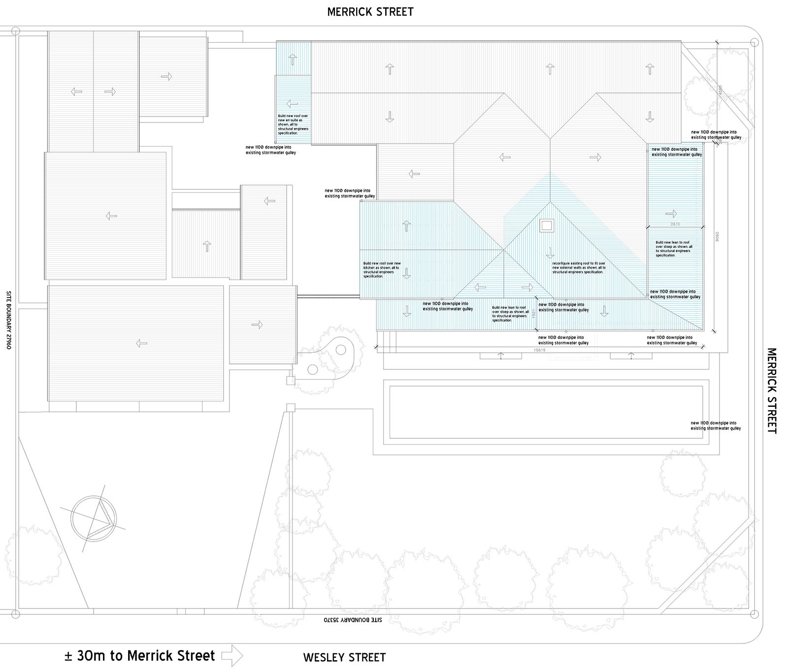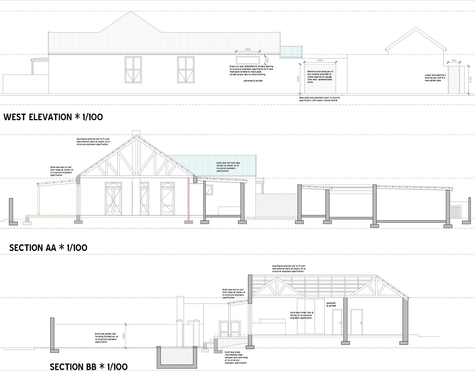 The brief was to increase the garden towards the driveway and create a new entrance to the main house. A new kitchen was required and the main bedroom was to get an en suite bathroom and the living space more access to light.