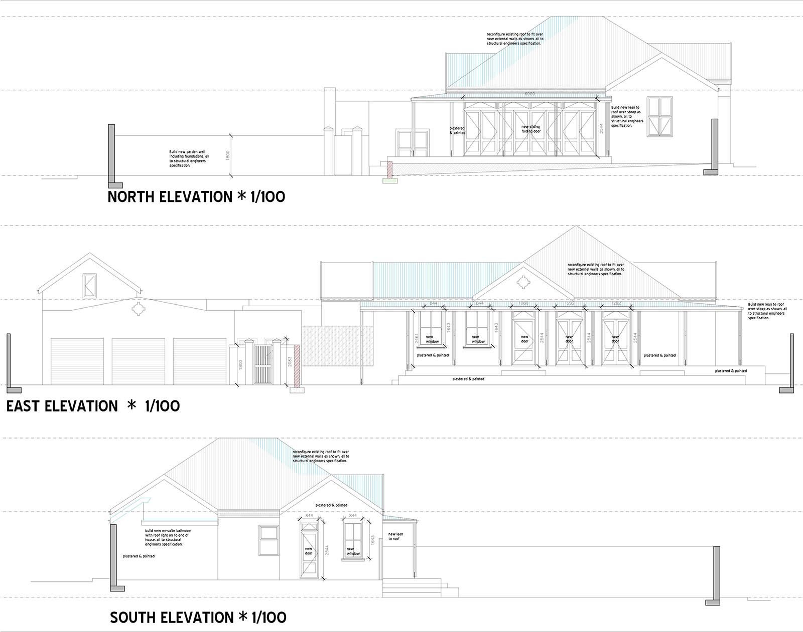 The existing house must have been an old farm building, with attached outbuildings on a large portion of land. It had been altered on a number of occasions, mostly to its detriment. A former stoep surrounding the living area had been enclosed and turned into a kitchen and playroom. This resulted in both the living & dining rooms being internal, with no direct access to natural light.
